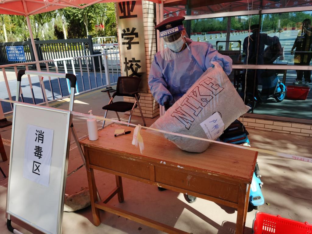 校门口是防疫工作的头道关口,他们在疫情期间要守护校内8000余名师生的安全,面对每天数百件物品、数十车物资、数千件快递,每一件必须要做到查明来源、全面消杀、转接运送。正是有于有淇这样的保安员时时刻刻扎实做好每一步操作,才能保障学校在疫情期间的安全,“每每看到师生在校园内露出的笑脸、听到学生和家长的句句感谢,我觉得所有的付出都是值得的。”于有淇说着继续干劲十足地投入到校园疫情防控的工作当中。