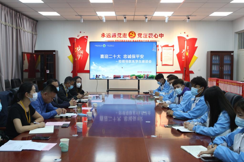 为更好地分析解决疫情封校期间学生的急难愁盼问题,畅通校园从严管理期间学生诉求反映渠道,确保广大学子健康、安全、有序地学习生活。10月2日晚,商学院召开“喜迎二十大 忠诚保平安——校领导联系学生座谈会”,校党委副书记张桓在竞智楼与商学院学生代表亲切座谈交流,详细了解疫情封闭管理期间同学们的学习和生活情况。组织人事部、学生工作部、保卫处、商学院负责人参加座谈会。