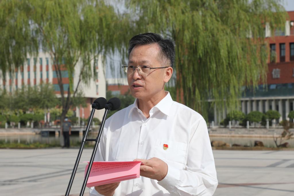金秋九月,惠风和畅。9月13日,学校2021年新学期升国旗仪式在阳光广场隆重举行。校领导赵利宁、苏晓军、焦玉柱、李晓延、马元、陈志勇及党群行政工作人员、各院系师生代表参加升旗仪式,仪式由党委副书记苏晓军主持。