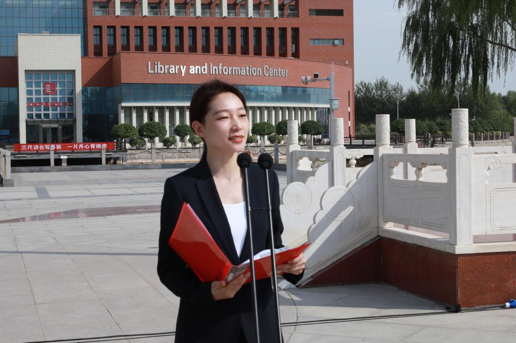 工业工程学院教师王萌代表全体教师在国旗下发表演讲