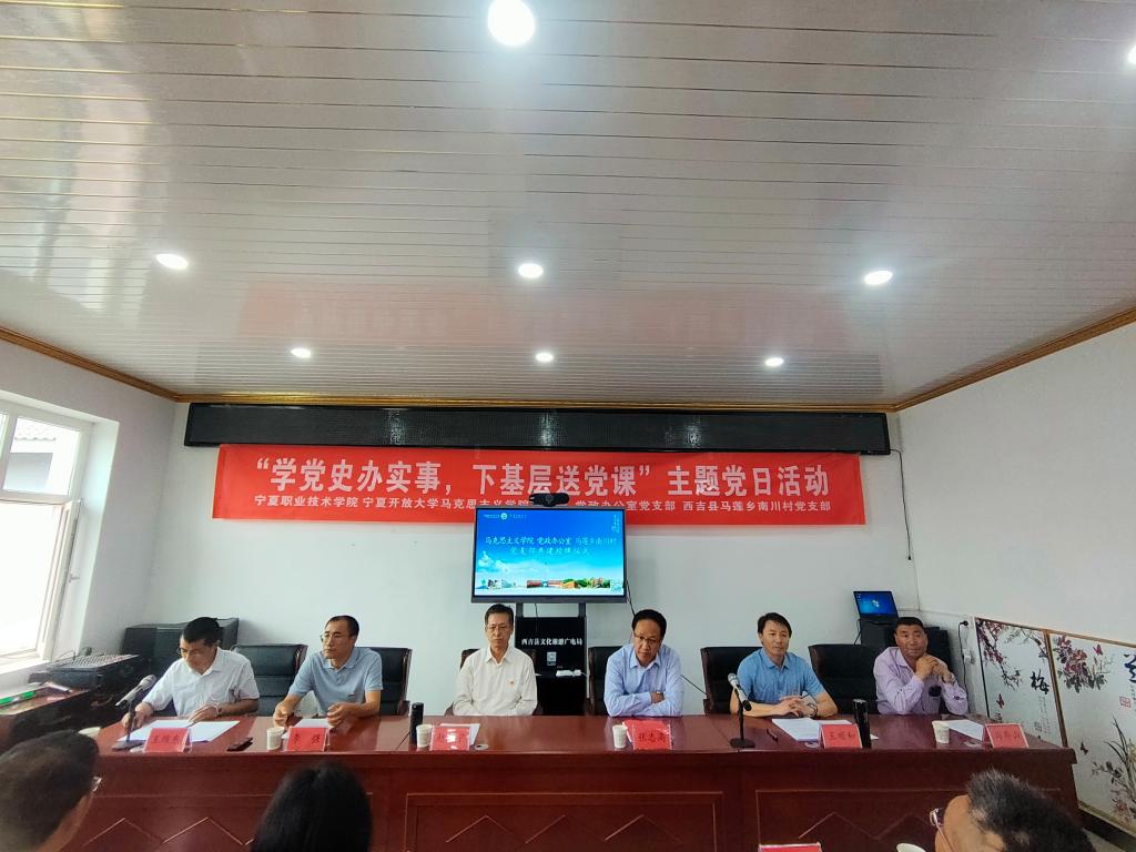 7月26日至27日,马克思主义学院党支部和党政办公室党支部到西吉县马莲乡南川村与村党支部联合开展共建活动。学校党委书记赵利宁、马莲乡党委书记张志高、党政办公室党支部书记李强、马克思主义学院党支部书记王顺和等各支部领导、党员代表约50人参加了共建活动。活动由南川村驻村第一书记王维东主持。
