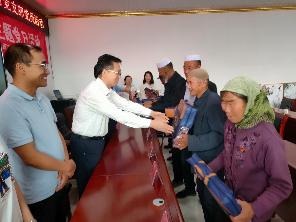党委书记赵利宁为南川村老党员代表赠送慰问品