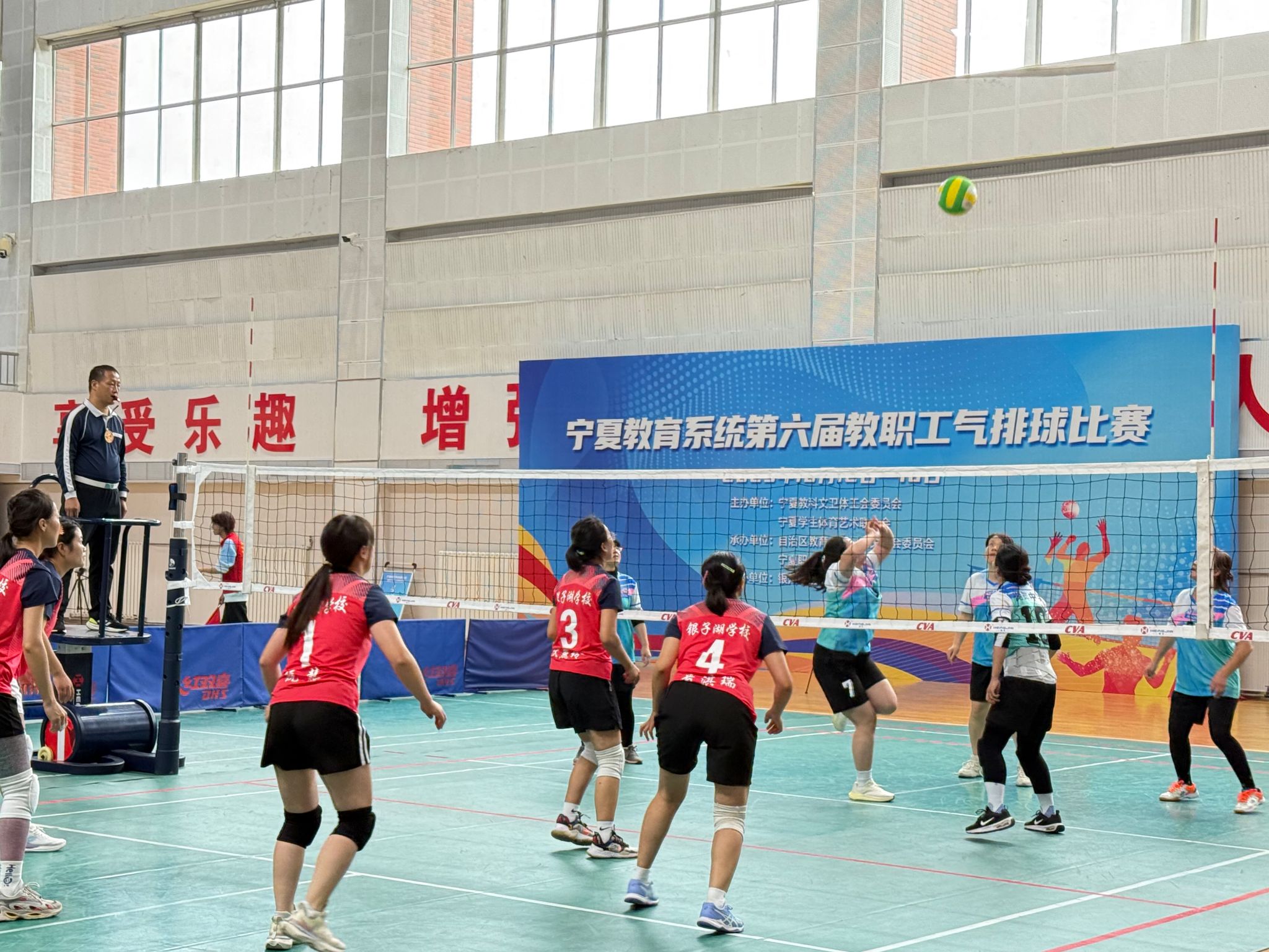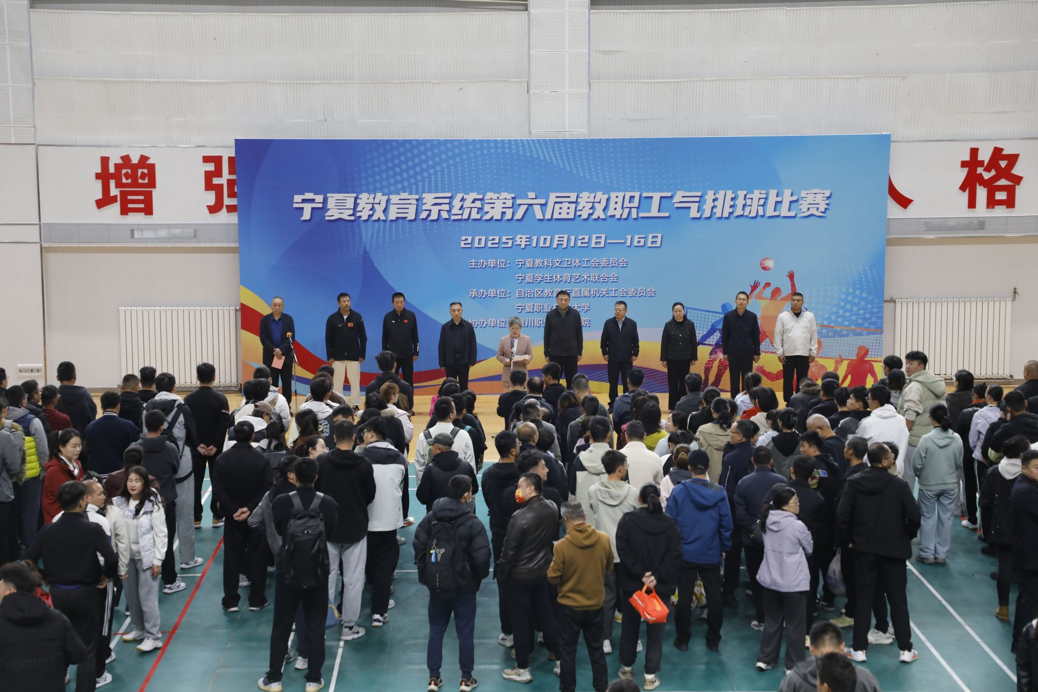 宁夏教育系统第六届教职工气排球比赛于10月12日在宁夏职业技术大学隆重开幕。本届比赛由宁夏教科文卫体工会委员会、宁夏学生体育艺术联合会联合主办,自治区教育厅直属机关工会委员会、宁夏职业技术大学承办,银川职业技术学院协办,旨在丰富教职工文化生活、提升身体素质,充分展现我区教育工作者团结协作、奋发向上的精神风貌。
