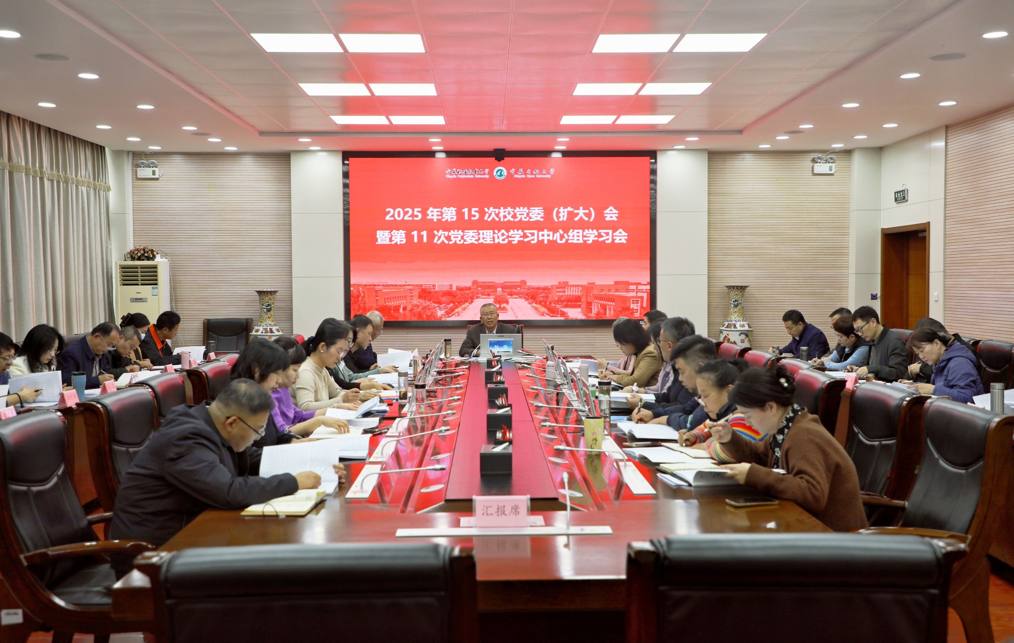 会议强调,全校上下要将全面深入学习贯彻习近平总书记重要讲话和党的二十届四中全会精神作为当前和今后一个时期重大政治任务,全面准确把握全会的重大意义、精神实质和核心要义,深刻领会“十五五”时期的重要地位和面临的形势,做好学校“十四五”规划总结评估,深入谋划、系统推进学校“十五五”规划编制工作,切实描绘好宁夏职业技术大学和宁夏开放大学未来五年和中长期发展蓝图。