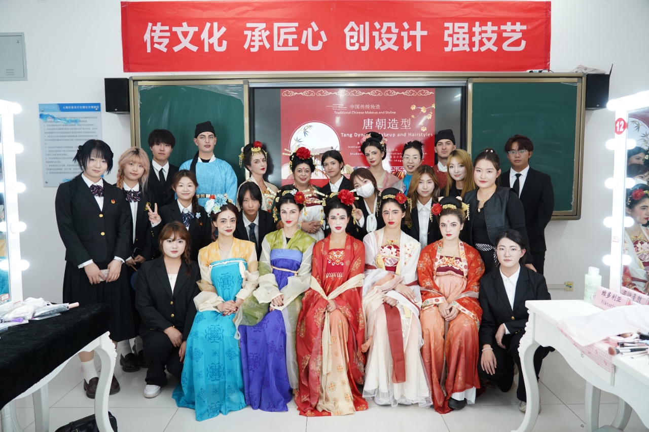 在校内文化体验课程中,保加利亚学生展现出浓厚的兴趣与参与热情。田径场上,太极拳的一招一式传递着中国传统哲学智慧;文体中心内,乒乓球在方寸球台间架起友谊的桥梁;插花课上,同学们在花叶取舍间感悟中式审美意境;非遗香包制作中,一针一线缝制出对美好祝福的寄托;沙画体验时,流动的沙粒勾勒出“大漠孤烟,长河落日”的壮美画卷;而旗袍文化与古代妆造体验则将活动推向高潮,学生们身着汉服,学习传统礼仪,用镜头定格东方之美的难忘瞬间。