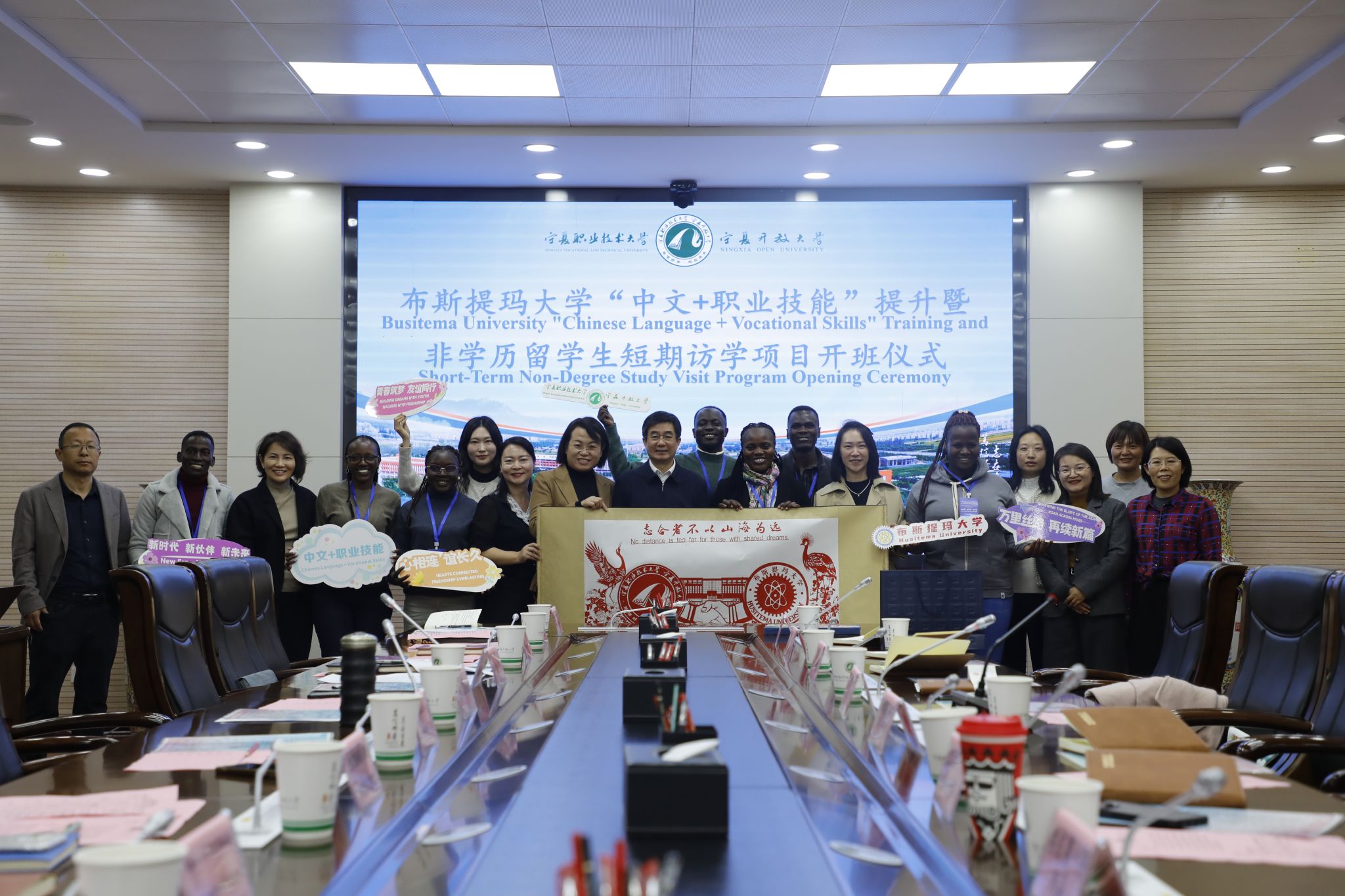 11月10日上午,学校在竞勤楼三楼会议室举行乌干达布斯提玛大学“中文+职业技能”提升暨非学历留学生短期访学项目开班仪式。学校党委书记周震,副校长黄文娟,布斯提玛大学访学团领队奥沃穆吉莎·戈莉娃博士及六名访学学生,以及学校相关职能部门和承担授课任务的院系负责人共同参加仪式。仪式由黄文娟副校长主持。
