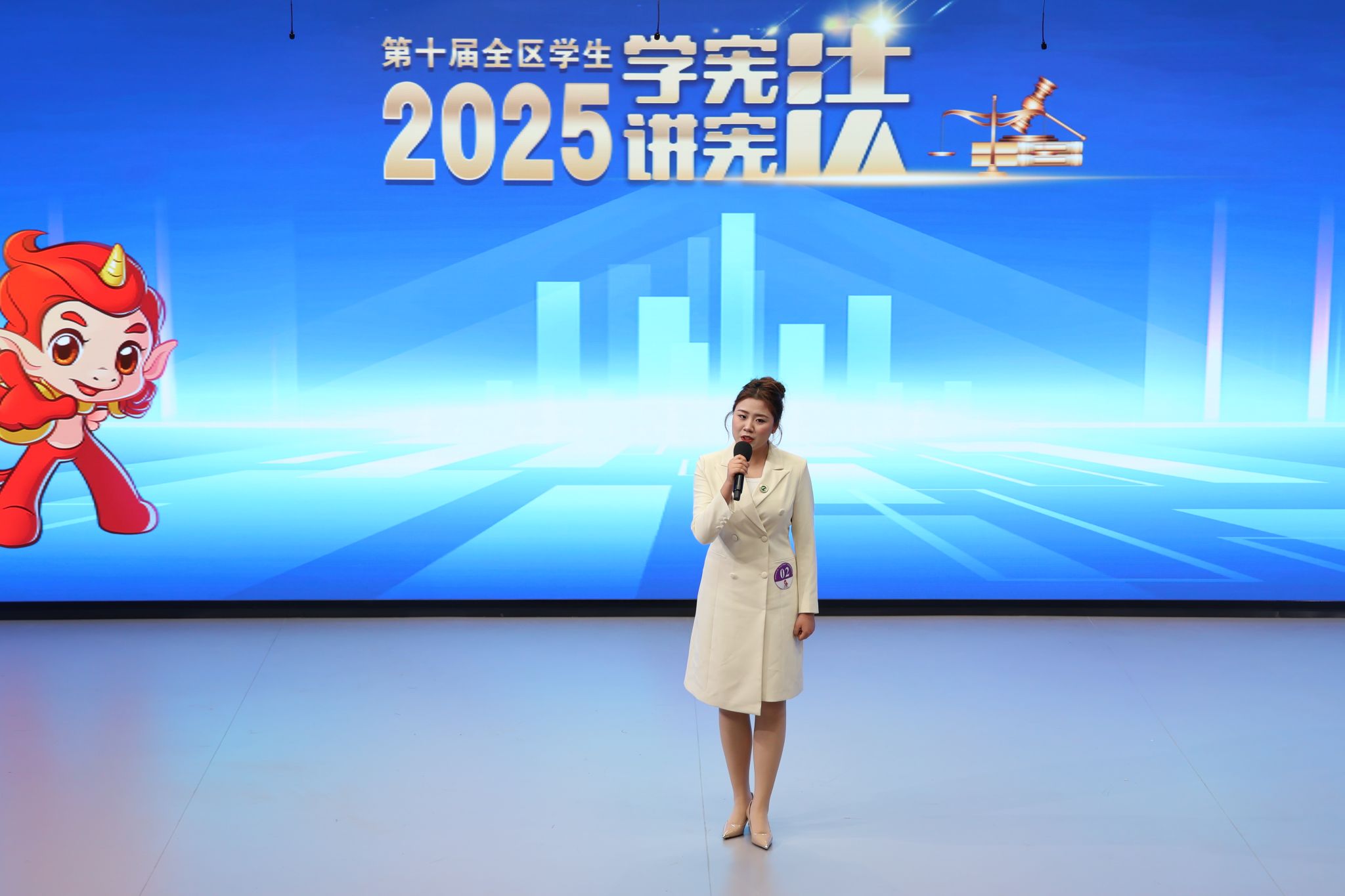 本次比赛旨在普及宪法知识,弘扬宪法精神,树立宪法权威,营造良好的宪法学习宣传教育氛围,有效增强全区青少年学习宪法的意识,提升青少年法治意识和法治素养。总决赛现场气氛热烈,各位选手围绕“学宪法讲宪法”这一主题,各展风采,用坚定的信念、清醒的认知和生动的语言,阐述对宪法精神的深刻理解与践行感悟。