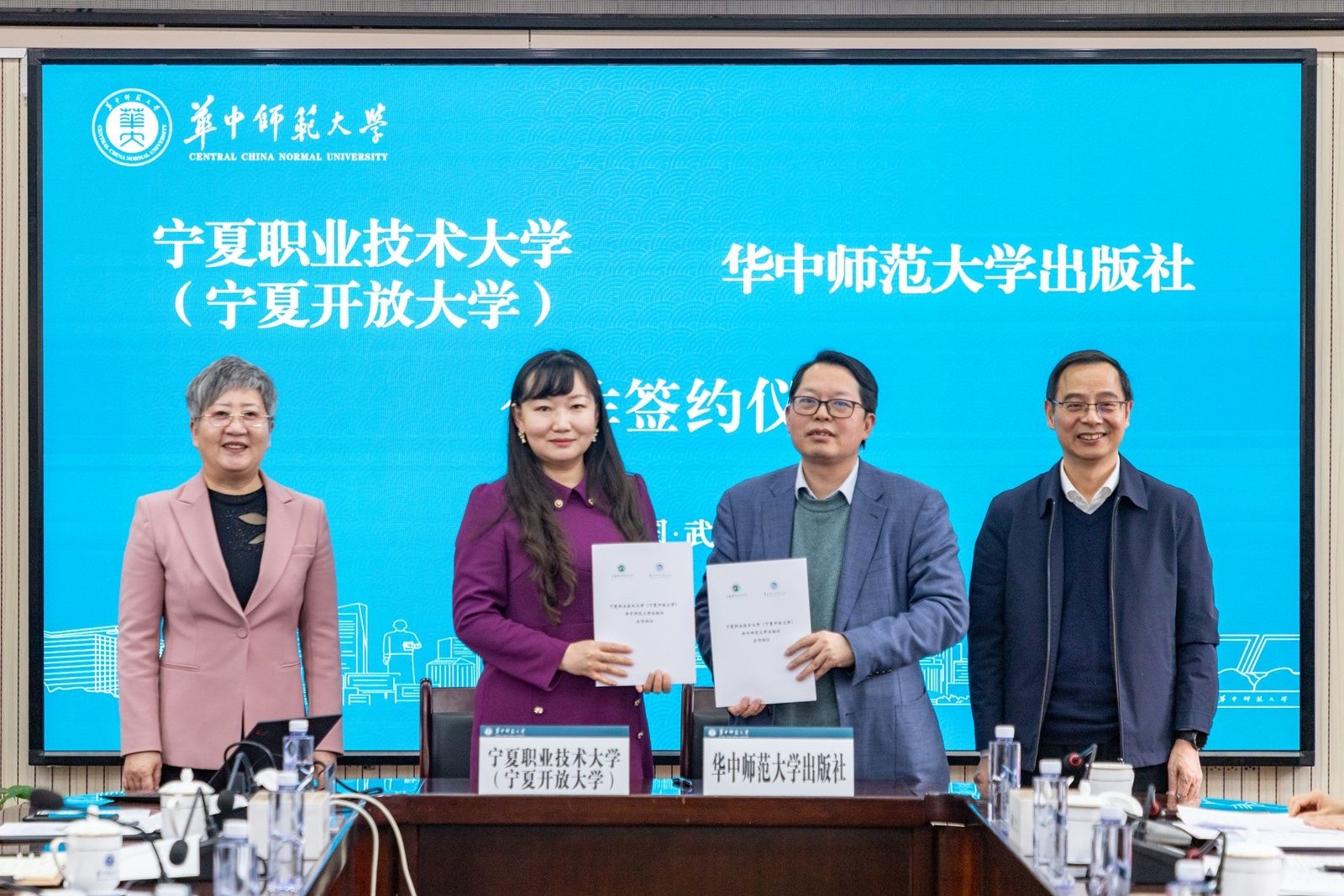 期间,双方于12月15日举办专题座谈会,华中师范大学党委副书记查道林致欢迎辞。学校副校长李晓延介绍了学校升格为本科层次职业大学后的发展规划,希望依托华中师范大学优势,在人才培养、联合教研、资源共建等方面深化合作。双方围绕职业教育本科建设、专业标准研制等议题深入交流。以此为契机,宁夏职业技术大学与华中师范大学出版社正式签署协议,在教材出版、项目申报及新形态教材开发培训等领域开展深度合作。此举不仅固化了本次培训成果,更为未来持续协同创新、探索东西部院校协作发展新模式奠定了制度基础。