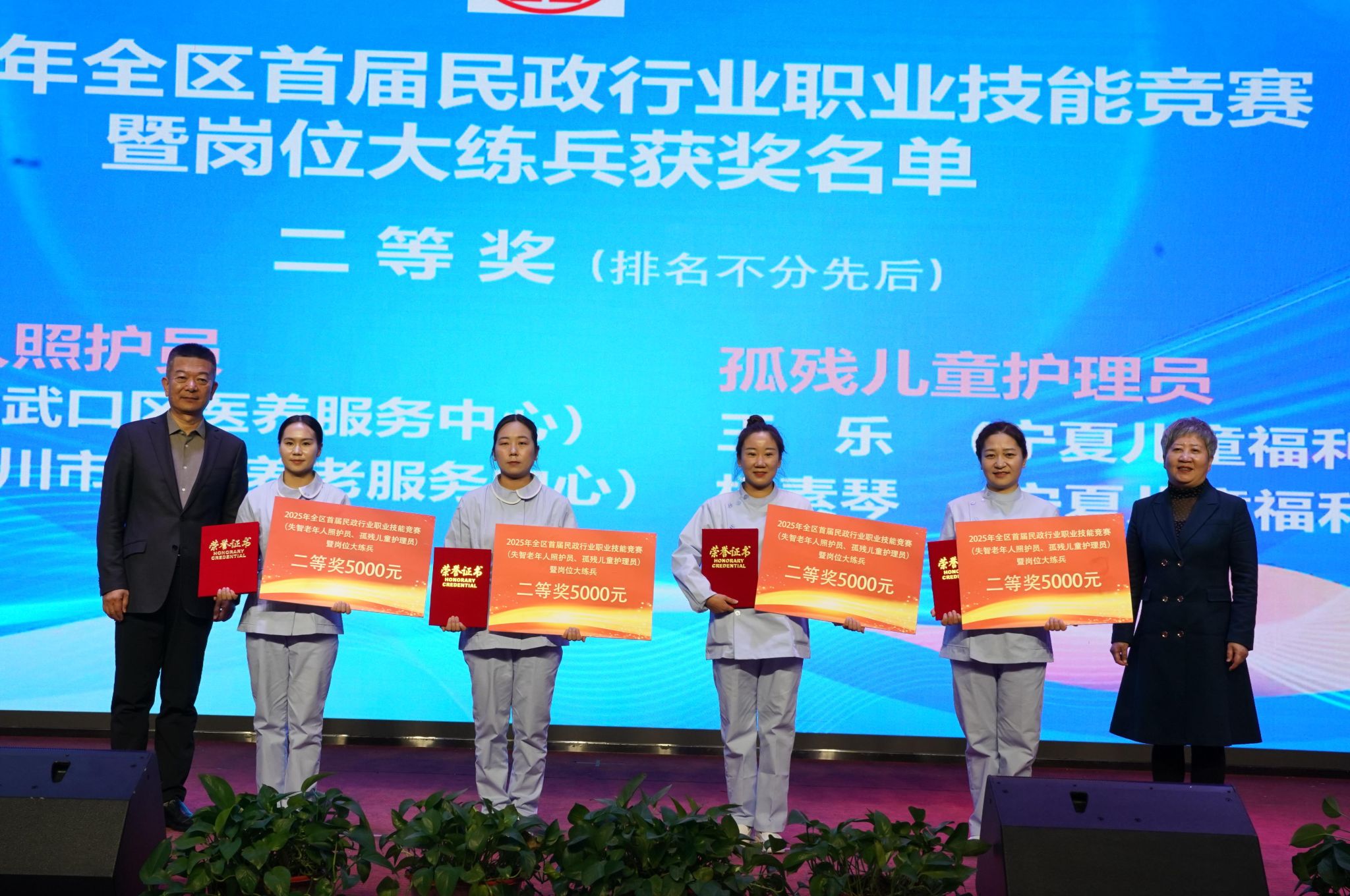 闭幕式上,自治区民政厅副厅长张进军对竞赛的圆满成功表示祝贺,对学校的承办工作给予高度肯定。他表示,自治区相关部门将继续支持宁夏职业技术大学等院校加强养老服务专业建设,深化产教融合,健全养老技能人才“引育评用留”全链条机制,推动竞赛成果转化为日常服务规范,让精湛技能和人文关怀成为行业服务“标配”,为我区养老服务事业高质量发展筑牢人才根基。