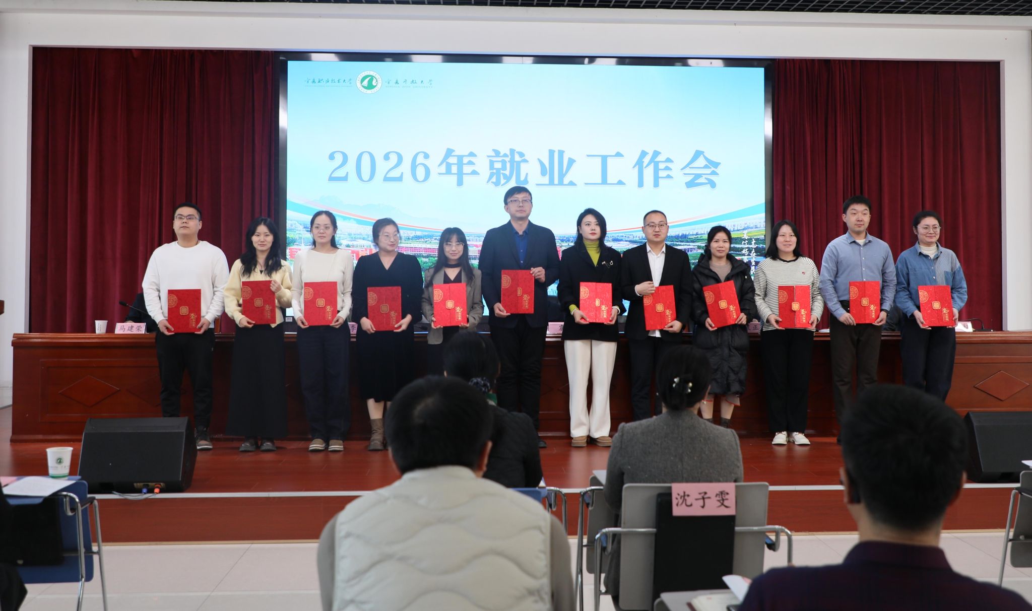为深入学习贯彻习近平总书记关于高校毕业生就业工作的重要指示批示精神,全面落实全国、全区高校毕业生就业创业工作会议精神,1月13日,学校召开2026年就业工作会议,总结2025年就业工作成效与经验,研判就业形势,安排部署2026年就业工作。学校党委书记周震出席并讲话,校长袁正国主持会议。学校领导李晓延、陈灿、马建荣,相关部门、各院系党政负责同志,就业工作专干、辅导员、合作企业及优秀毕业生代表参加会议。