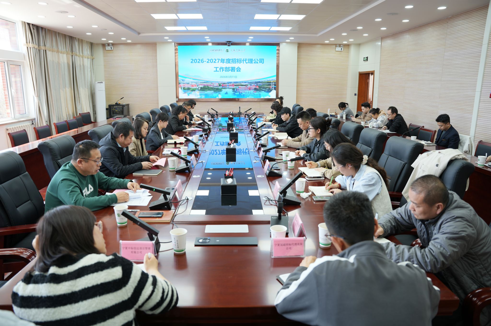 为进一步规范学校招标采购工作,明确招标代理服务要求,凝聚工作合力,3月11日,我校召开 2026至2027 年度招标代理公司工作部署会。陈灿副校长出席会议并讲话,党政办公室(审计处)、计划财务处、后勤服务处负责人,资产管理处采购工作人员,会计事务所负责人,新入选的12家招标代理公司主要负责人及项目实施工作人员参加会议。会议由资产管理处处长孔阳阳主持。