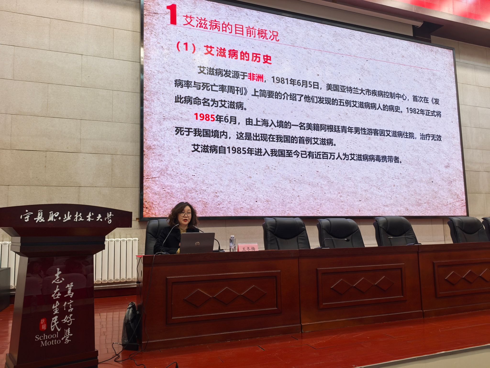 本次讲座特别邀请西夏区禁毒办李向文老师、西夏区疾控中心公共卫生副主任医师王冬梅老师现场授课。李向文老师凭借丰富的宣讲经验,结合真实案例,为师生详细讲解毒品种类、危害及识毒防毒拒毒实用技巧,让大家深刻认清毒品对个人、家庭和社会的严重危害。王冬梅老师则围绕艾滋病传播途径、科学预防方法及相关法律法规展开讲解,阐明毒品使用与艾滋病感染的关联,同时倡导大家尊重艾滋病感染者,营造全民防艾的良好氛围。学校的禁毒志愿者们还向参加讲座的师生发放禁毒宣传手册,鼓励大家争做“禁毒宣传大使”。