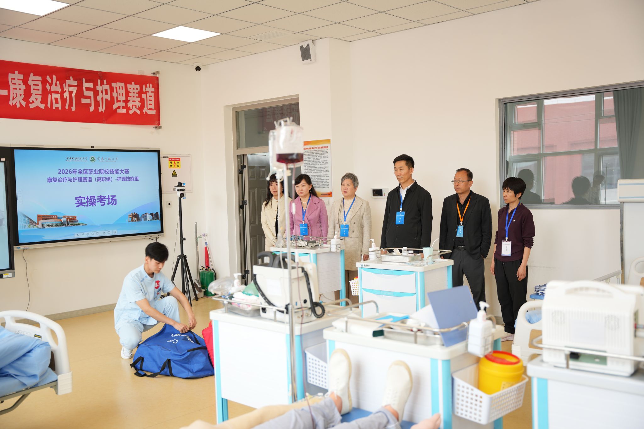 4月8日至10日,由自治区教育厅、工业和信息化厅、财政厅、人力资源和社会保障厅、农业农村厅、总工会等联合举办的2026年全区职业院校技能大赛在我校开赛。自治区教育厅职业教育与成人教育处处长马小燕、副处长高文熊,学校校长袁正国、副校长李晓延分别到各赛点巡赛。