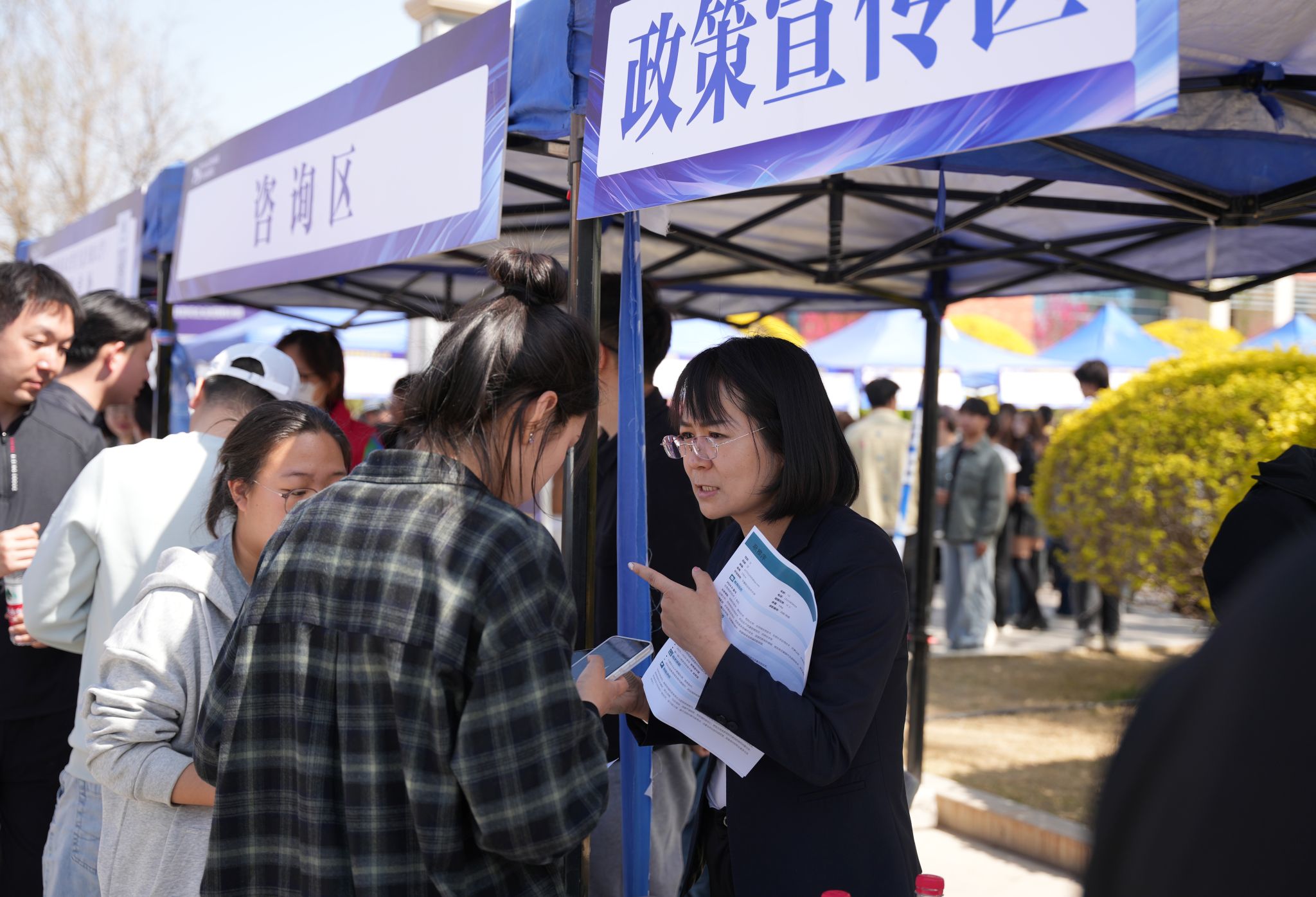 此次招聘会突显三大亮点,一是专业精准分区,按产业需求设A(装备制造)、B(金融服务)、C(软件信息)、D(文化传媒)、E(农林食品)、F(健康养老)、G(轻工纺织)七大专区,实现毕业生“按需入场、对口求职”;二是数字赋能对接,为每家参会企业定制专属二维码,集成企业简介、岗位信息及实时展位导航,学生扫码即可“码上知企、码上应聘、码上定位”,大幅提升人岗匹配效率;三是服务全程护航,同步开设政策服务站、就业指导和简历面诊台,由西夏区人社部门骨干及高校就业导师组成专业团队,提供政策解读、职业规划、简历优化与模拟面试等“一站式”精准帮扶,切实增强学生就业能力与信心。