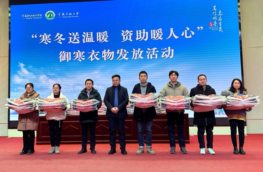 活动现场,张桓副书记为各院系代表发放了御寒棉衣,并表达了对受助学生的慰问和关心。他表示学校正处于“双高”建设与本科申报的关键期,大家能有幸参与其中,希望同学们秉承“笃信好学、志在生民”的校训和“追求卓越、精益求精”的工匠精神,以利他的心态,做最奋进、最热心、最包容的宁职人,走好技能成才之路,助力学校行稳致远。与此同时,张桓副书记为同学提出两点希望:一是始终保持一颗积极向上的心态,正视困难,在磨砺中奋起拼搏,利用好在学校的宝贵时光,不断提升知识水平和专业技能,在毕业时获得更好的就业机会,成就精彩人生,改变自身和家庭命运;二是常怀感恩之心,把感激之情化作今后学习的动力,追求卓越,争创优异成绩,用实际行动回馈国家、奉献社会,把个人梦想与实现中华民族伟大复兴中国梦紧密结合,成为担当民族复兴大任的时代新人。
