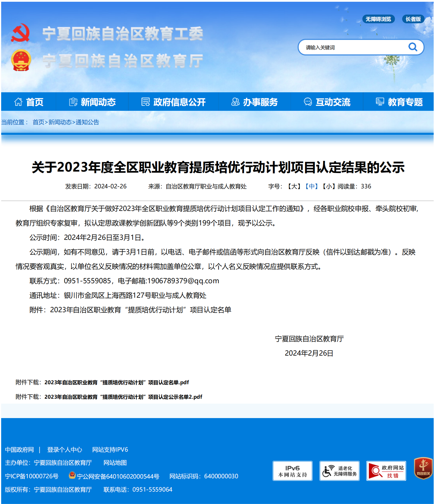 2023年度全区职业教育提质培优行动计划项目认定结果的公示