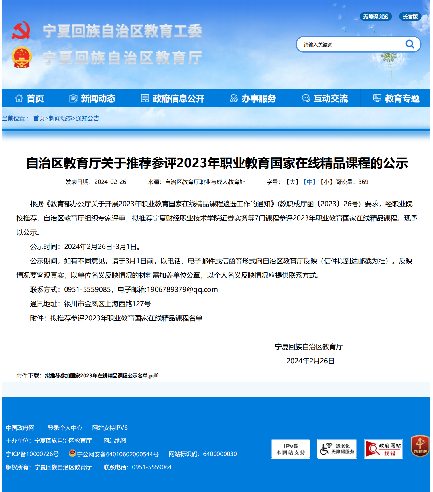 新学期伊始,我校教学工作再传捷报。2月26日,自治区教育厅发布了《关于推荐参评2023年职业教育国家在线精品课程的公示》和《关于2023年度全区职业教育提质培优行动计划项目认定结果的公示》,我校李献智教授主持的《设备电气安装与调试》课程被推荐参评2023年职业教育国家在线精品课程;我校有九大类22个项目拟通过《2023年度全区职业教育提质培优行动计划项目认定》,其中,被认定为自治区级“三全育人”典型学校、自治区级示范性职工培训基地、自治区级示范性职教集团(联盟)2项、自治区职业院校思政课教学创新团队2项、思想政治课示范课堂6项、示范性教师企业实践流动站2项、“课堂革命”典型案例3项、产教融合实训基地2项、“万人计划”教学名师3人。