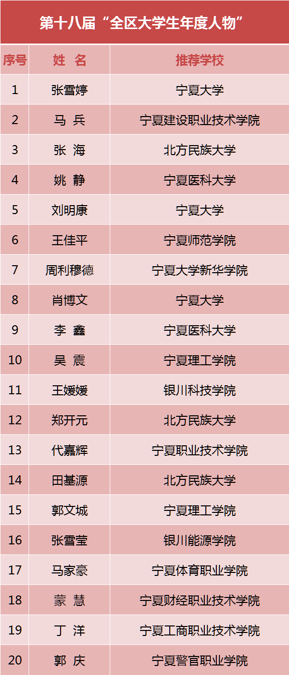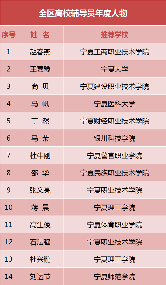 近日,自治区教育工委、教育厅公布2023年“全区高校辅导员年度人物”和第十八届“全区大学生年度人物”名单。我校艺术设计学院辅导员张文亮和健康管理与社会服务学院辅导员石法强被评为2023年“全区高校辅导员年度人物”,软件学院2021级物联网应用技术专业学生代嘉辉被评为第十八届“全区大学生年度人物”。
