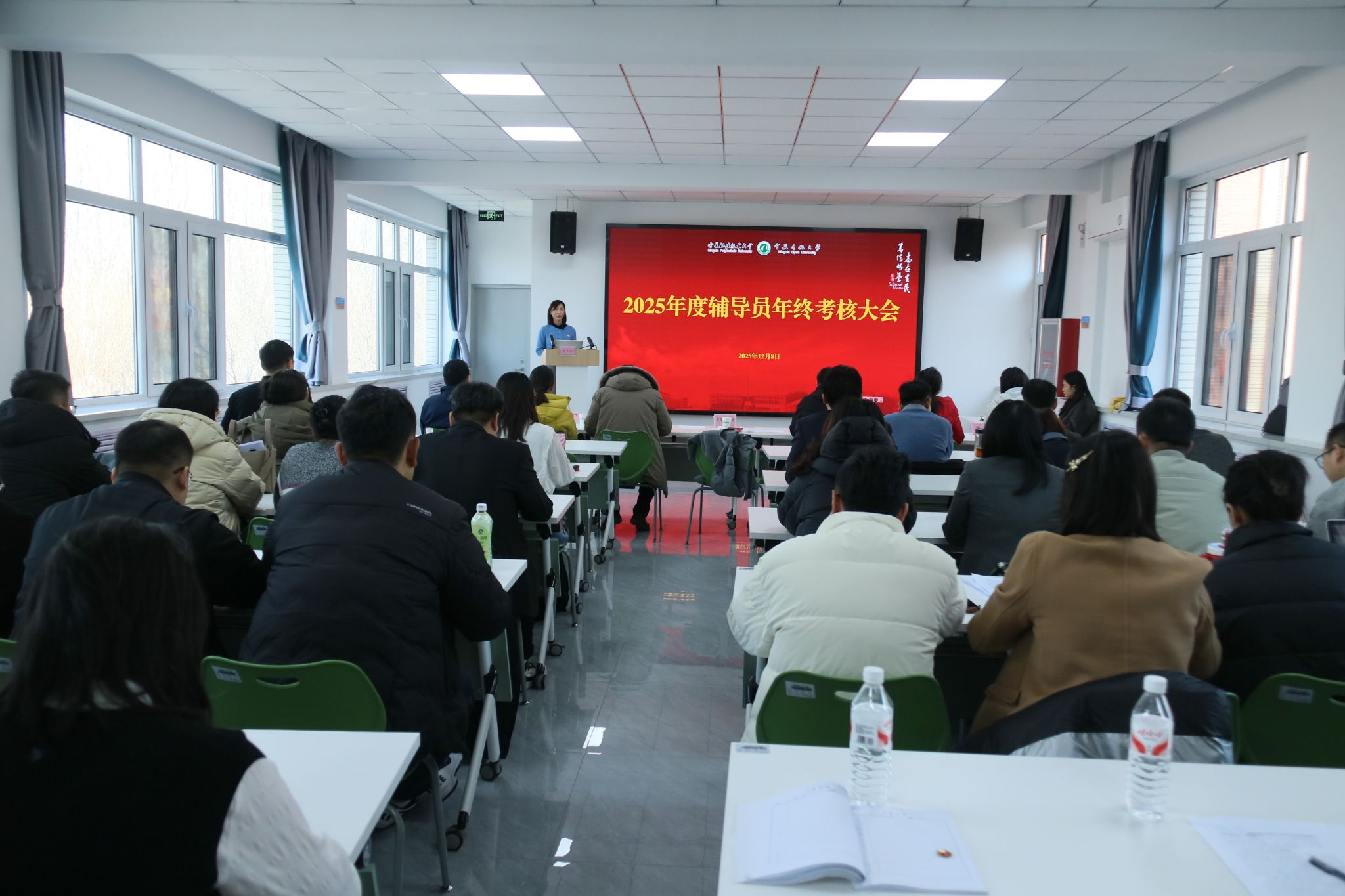 为全面总结年度学生工作,提升辅导员队伍专业素养与履职能力,12月8日上午,学生工作部在“一站式”学生社区多功能厅组织召开2025年度辅导员年度考核大会。辅导员考核工作领导小组全体成员、各院系学生工作办公室主任及全体辅导员参加会议。